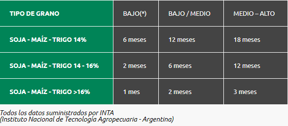 El grano con alto contenido de humedad que es almacenado en bolsas puede conservarse en buen estado durante más tiempo que el mismo grano guardado en silos de chapa, pero debe ser secado al ser extraído.